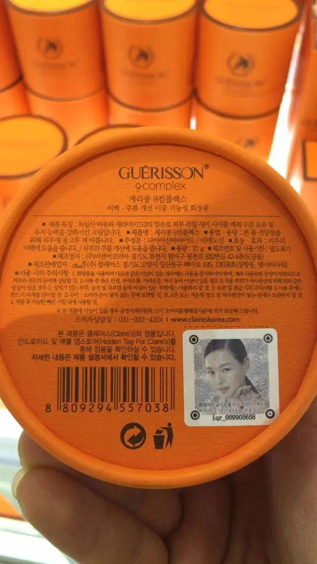乐天免税店的马油已经换了最新包装了这里上传的是新包装: 新包装都有李哈妮的头像哦 注意看: 下面的是新包装画圆圈的地方都是与以前的免税店以及专柜里的马油有区 别的哦~亲们自己用或者代购一定要认清楚啊!!!马油最新包装,外盒底部 印有代言人头像二维码;顶部印有‘9?complex’字样;盒子里面纸质 说明标签换成3页纸,带有中文说明;瓶子封口的塑料片换成印有文字的 了;瓶底有两组凸出的玻璃字体‘9?complex’。 微信:728272525 注意看: 新版的马油也升级了防伪码,在APP 手机应用中搜索claries 下载hidden tag for claries ,然后扫描途中的李哈妮 防伪码。。页面会显示正品与否 需要的JM加微信:728272525 哦~