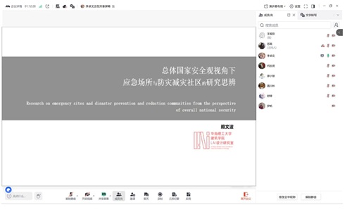 交流会上,赖文波教授首先分享了地面安全领域的研究成果与实践经验。团队长期深耕应急避难场所规划设计,聚焦地面安全的落地实施,完成了华南理工大学、华南农业大学等多个校园型应急庇护场所的改造项目,总投入近3000万元。项目从选址论证、分区规划、疏散仿真到设施优化等全流程开展研究,涉及应急起降点布局、无障碍设施建设、地下管网适配、疏散通道优化等具体问题,形成了可复制的场地改造方案与技术标准。同时,团队还关注防灾减灾社区建设,深入研究社区应急体系落地路径,构建了涵盖风险地图绘制、应急物资储备、消防通道规划等多维度的社区安全建设框架,相关研究已形成多篇学术成果并应用于实际项目。赖文波教授介绍,团队正编写《安全人居环境设计概论》教材,计划整合667种灾害类型的应对方案,并结合2026年深圳地震公园示范项目形成实践案例集,为地面安全建设提供系统性指导。