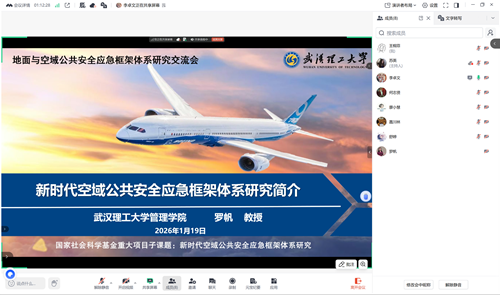 随后,罗帆教授详细介绍了空域公共安全应急体系的研究进展。作为空域安全子课题负责人,罗帆教授团队自2023年起开展了广泛而深入的调研工作,先后走访深圳空管站、鄂州花湖机场、中南民航局湖北分局等多家单位,深入无人机企业、通用航空机场及湖北省应急厅等机构开展实地调研,并与民航领域专家、学者进行多轮线上线下访谈。团队聚焦空域应急场域的系统性、协同性等特征,构建了涵盖国家、部门、省级、基层及社会协作层面的空域公共安全应急框架体系,完善了预防准备、监测预警、决策处置、资源调配、调查评估等全流程应急机制,并从法律、法规、规章、标准等层面梳理了空域应急法制建设要点。截至目前,团队已发表CSSCI、SSCI/SCI等高水平论文多篇,完成博士论文1篇、硕士论文4篇,开发多项安全预警管理系统并获得软件著作权,相关成果已在军用机场及部分民用机场得到应用。