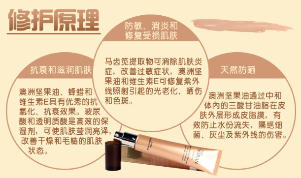 作者:diht9436 今天讲一下BB霜使用步骤、方法以及重点介绍一款BB霜,现在好多妹子上来就问好的BB遮瑕。。。感觉到妹子们对BB霜的理解是有误区啊。 BB 霜,是Blemish Balm的简称,作用主要是遮瑕、调整肤色、防晒、细致毛孔,能打造出Nude Look(裸妆效果)的感觉。BB霜原来是对剥皮或美白(增白)后,受损和损伤的皮肤保护和修护使用的再生霜,因此对皮肤的问题给与及时迅速的改善,能够改善和弥补皮肤的缺点,而得名叫BB霜。但BB霜它在60年代已经出现,起源地是德国,是用在医学美容上的,用专业术语来讲就是“伤痕保养伤”,当初的研发就是了提供给雷射治疗的人来使用的。因为一般人雷射后会出现剥皮和脱皮的情况,涂上它之后,会让皮再生,不只修饰伤疤,更有保养的功能。后来就沿用到美容化妆上了。插一下,德国人对皮肤的伤痕一类护理保护做的特别好,当下超级火的马油,就是德国的概念。 说到一款好的BB霜,那么什么样的BB霜才是好的呢,都要具备哪些功效呢? 首先是不过敏~ 就算BB霜再好,过敏您干用么;第二个就是遮瑕的问题;第三个就是自然,BB霜讲究裸妆的,大白脸实在是不太美观。。。。第四个就是是否具备修护功能啊,防晒的功能,第五个就是持久性防水性的问题。。一款好的BB霜是必须要具备这些条件的。第六点就是否有化学成分。 而今天推荐大家的就是一款,纯天然,修护遮瑕著称的一款全效BB霜??SISRAN希思岚,SISRAN全拼为 skin insurance 而希思岚BB霜更是完全发挥了“肌肤保险”的本质,从设计概念上就以:还原BB霜的本真,真正的具有修护字样功效!无添加,零伤害,最大程度减少肌肤负担,敏感肌肤也可以使用哦!长期使用不会对肌肤造成伤害。 上市时间: 2010年 月份: 7月 是否为特殊用途化妆品: 否 颜色分类: 自然色 规格类型: 正常规格 品牌: SISRAN BEAU TEMPS/希思岚 功效: 保湿 滋润 遮瑕 隔离 产地: 韩国 保质期: 3年 适合肤质: 任何肤质 先说过敏的问题;首先希思岚这款BB霜从上市以来,还没有肌肤过敏的情况出现,没有任何重金属和化学成分。 希思岚不过敏的原因很大一部粉取决于他的内容物;纯植物提取,所以特别不容易过敏,而这款BB霜还是她的滋润度很高,澳洲坚果油,蜂蜡,透明质酸,维生素E等都是皮肤保湿的天然产品。??澳洲坚果油:又称夏威夷果油,具有卓越的抗氧化和润肤功效,可促进细胞生长,加速伤口愈合,有助于营养和美化皮肤,减少皱纹的产生,并具有防辐射功效,可用来帮助治疗晒伤的皮肤。?蜂蜡:为肌肤提供多种营养及微量元素,可加速血液循环,排出毒素,减少水肿、皱纹和黑眼圈的产生。?透明质酸:又名玻尿酸,黏多糖的一种,具有超强的补水和锁水效果。?维生素E:促进肌肤新陈代谢,具有抗衰老和美白嫩肤的功效,防止黑色素沉淀、促进疤痕愈合,形成锁水层,使肌肤润泽、白皙、光滑。 至于遮瑕度,有的亲用的BB霜很厚重,还很不容易推。。。不过这款倒不会出现这种情况,极易好推,遮瑕度日常需求也是足够的!对毛孔也是有很好的隐藏作用。 自然度不用多说。希思岚自然度真的超级完美,而且在擦伤BB霜之后的十分钟后,妆效就会超级自然,非常适合亚洲人的肤色。。。。不会有化妆的痕迹,除非你是成天在外面送快递的妹子哈。。 一款好的BB霜不仅仅要起到遮瑕的作用,还要起到修护镇静的作用,而希思岚在这方面做的比较好,在内容物中添加了很多修护肌肤的成分:马齿笕提取物可消除肌肤炎症,改善过敏症状,澳洲坚果油和维生素E的肌肤修复效果显著,即使是敏感肌肤也可放心使用。 这里说一下,sisran希思岚是没有防晒功能的,因为防晒剂都是通过物理折射,反射和吸收的原理在肌肤表层形成图层,起到防晒的效果,防晒剂很容易引起皮肤的过敏。 使用方法:大家先用中指和无名指沾少许bb霜,先把脸上斑点给覆盖,分别在眼周、鼻梁、眉间从上到下推均匀,在然后用余粉涂抹眼皮,就成功一半了,呵呵是不是很简单,为什么要用中指和无名指呢,因为中指和无名指一般被人称为按摩指,用它们来按摩面部,不管是从力度还是舒适度上都最佳的。